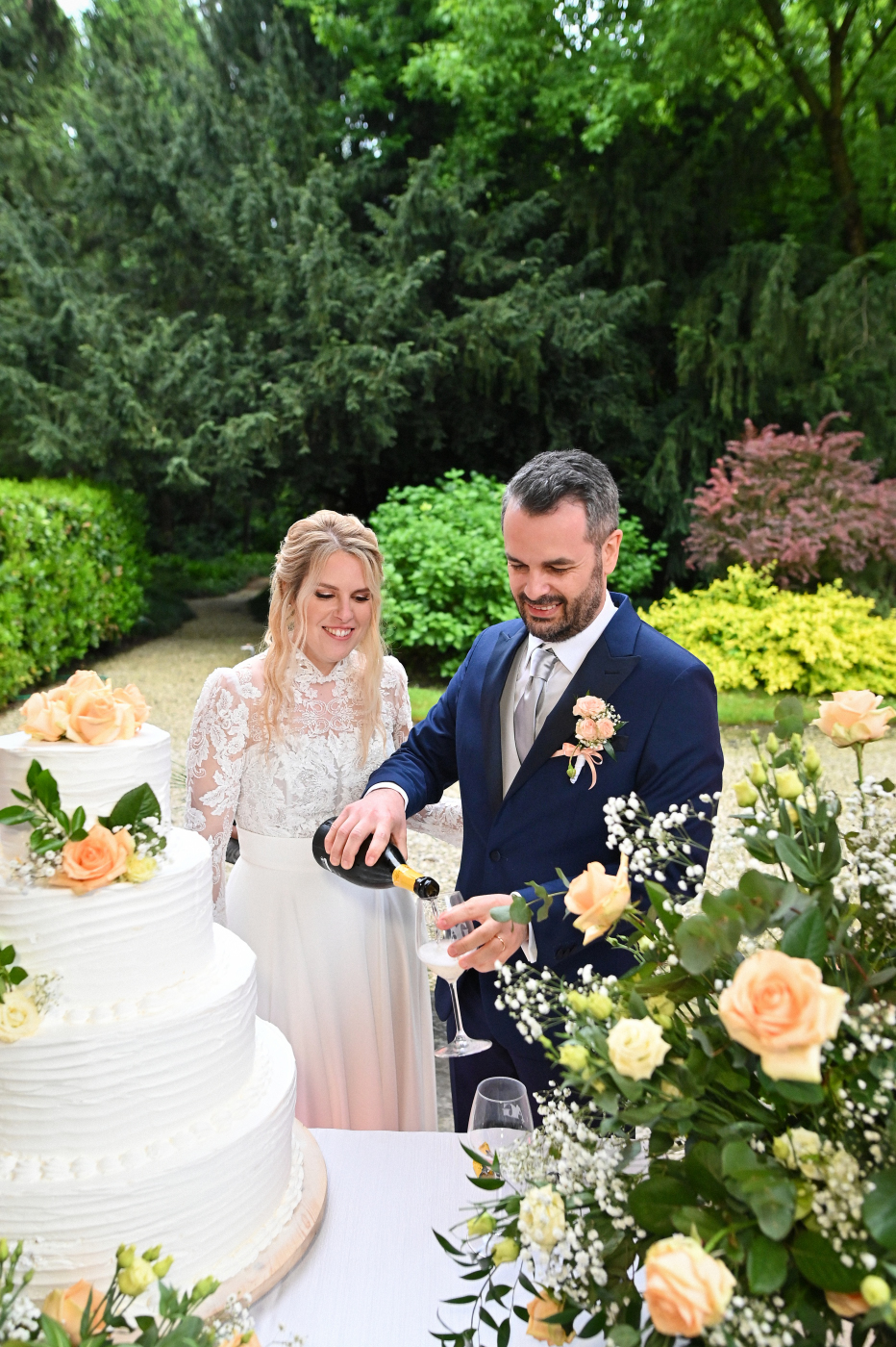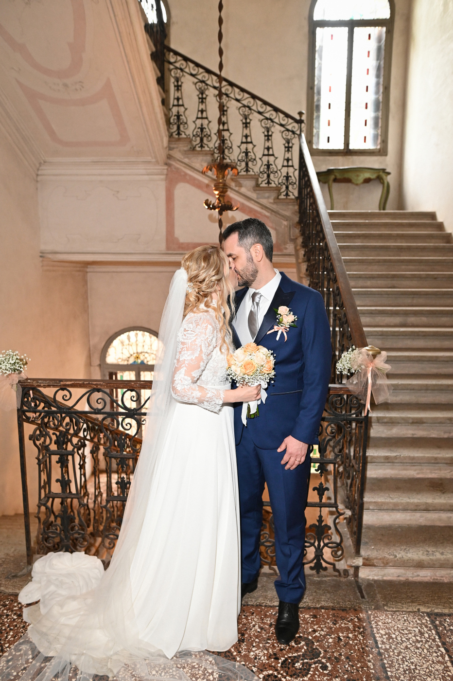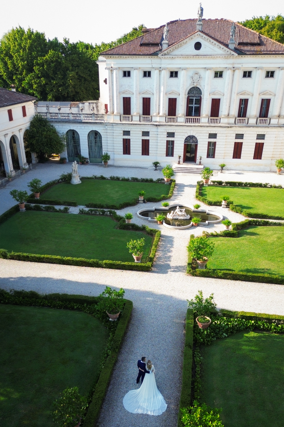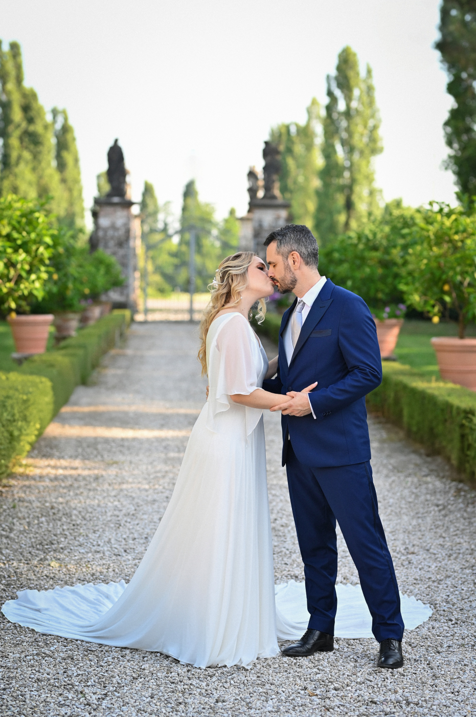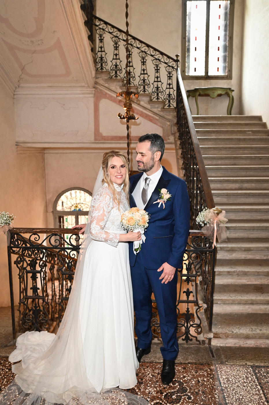 Celebrare le nozze a Villa Ca’ Marcello significa immergersi in un’atmosfera aristocratica. Sara e Gianluigi hanno scelto la maestosità del salone da ballo affrescato per il ricevimento, mentre il rinfresco si è svolto tra i sentieri del vasto parco storico, tra fontane e statue classiche.