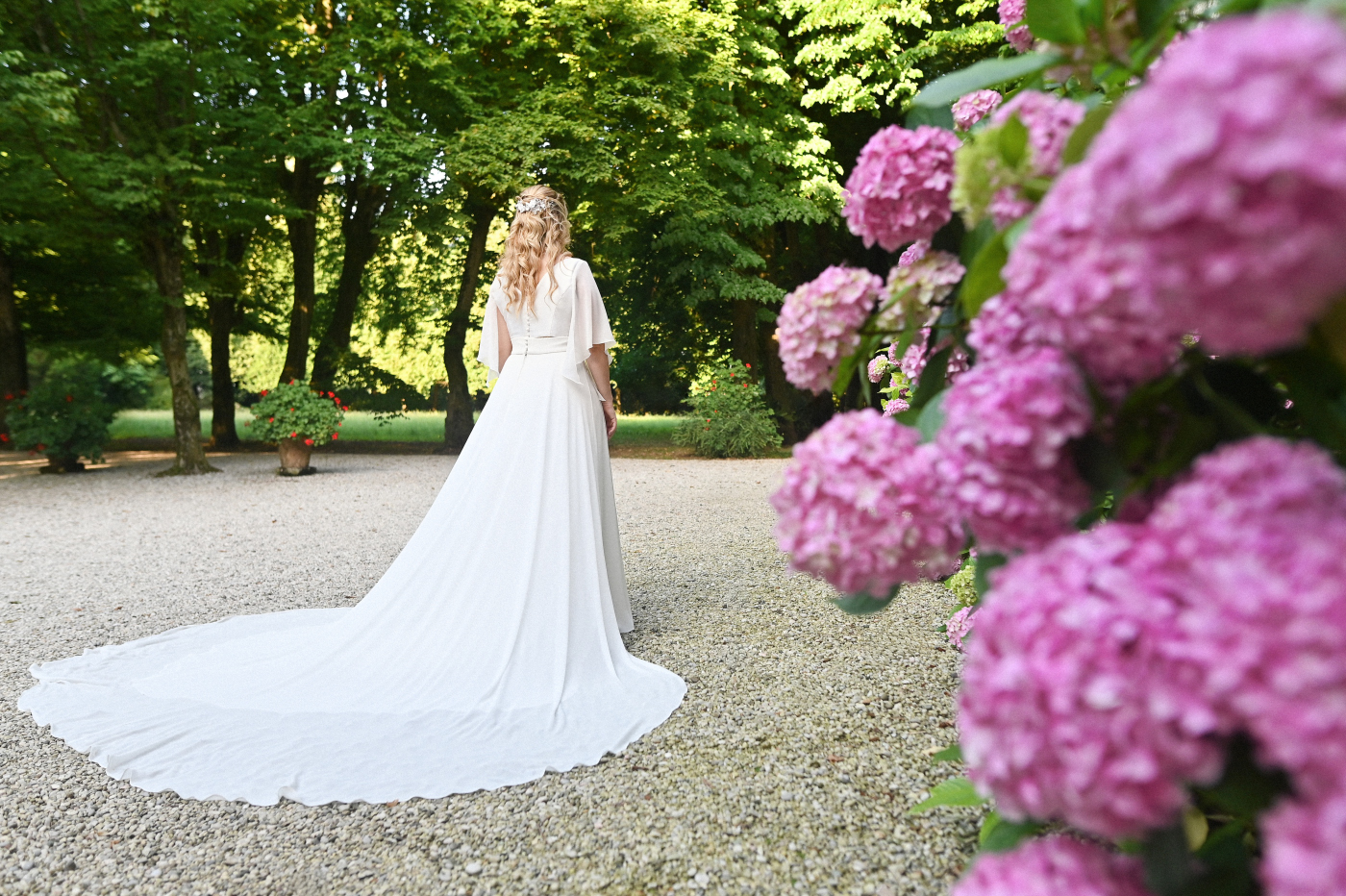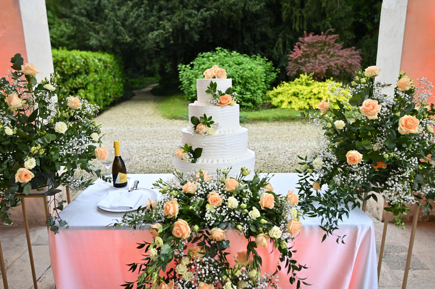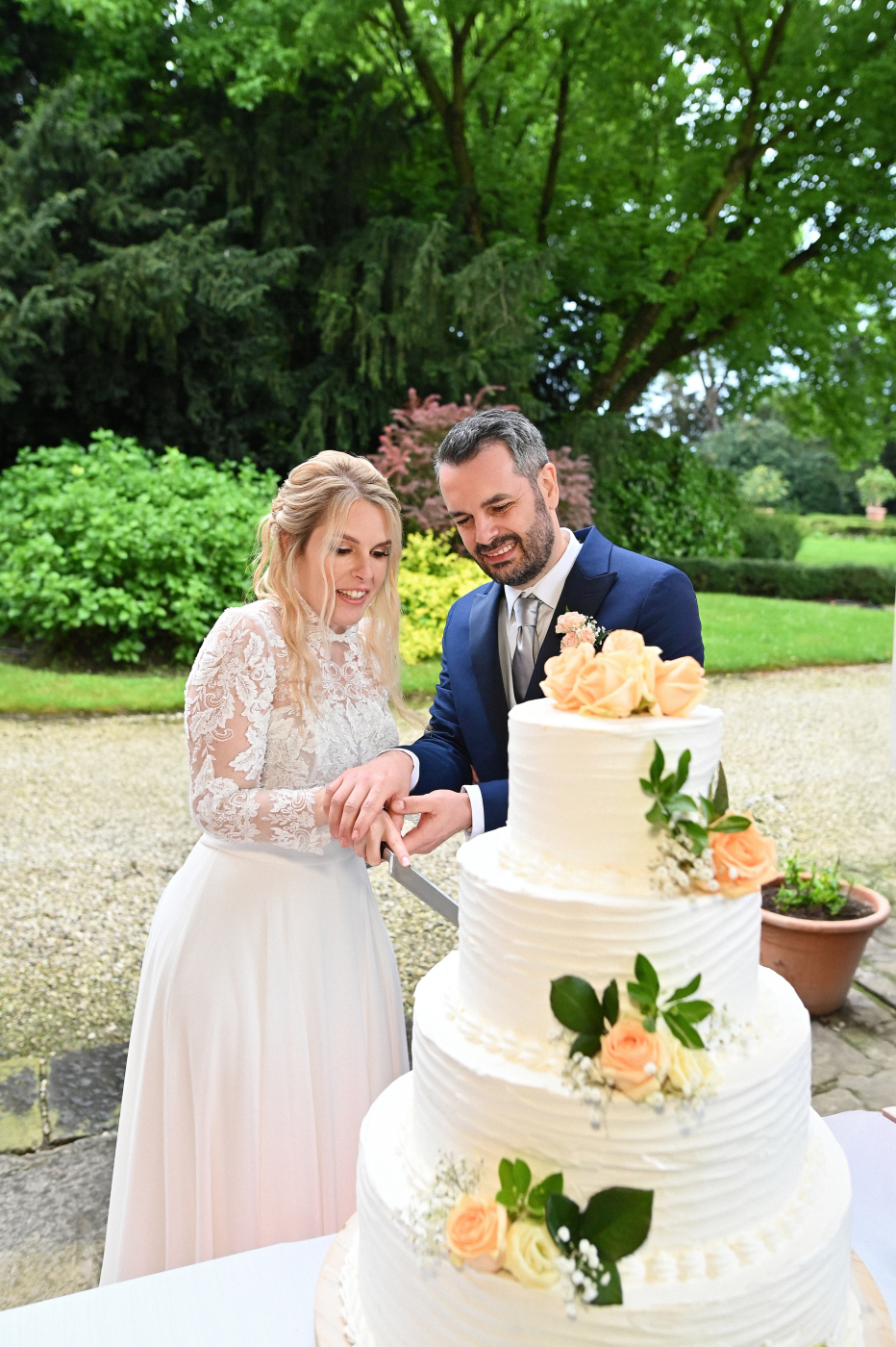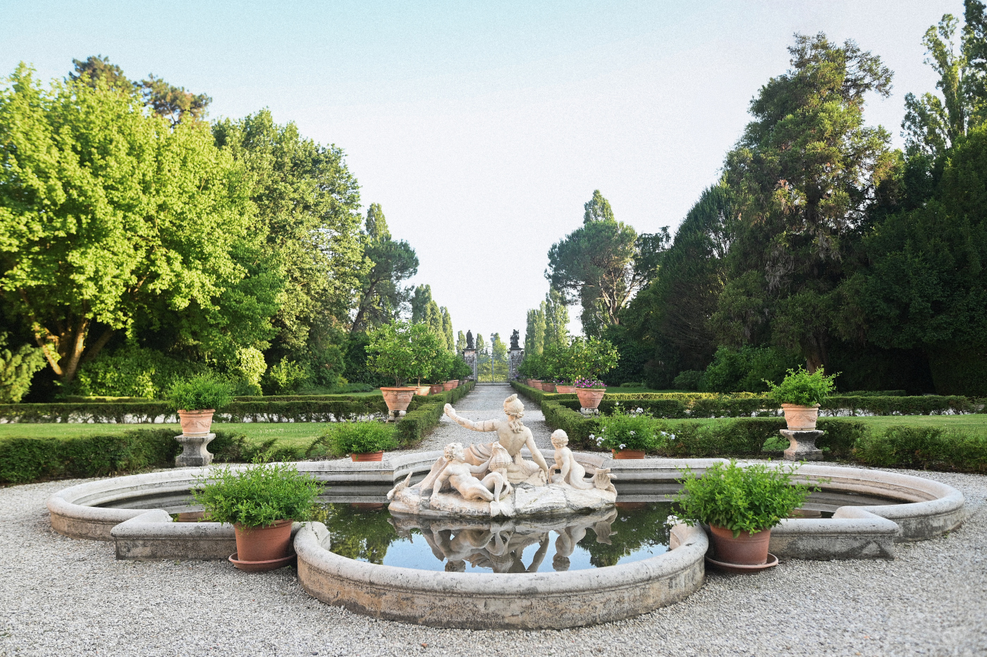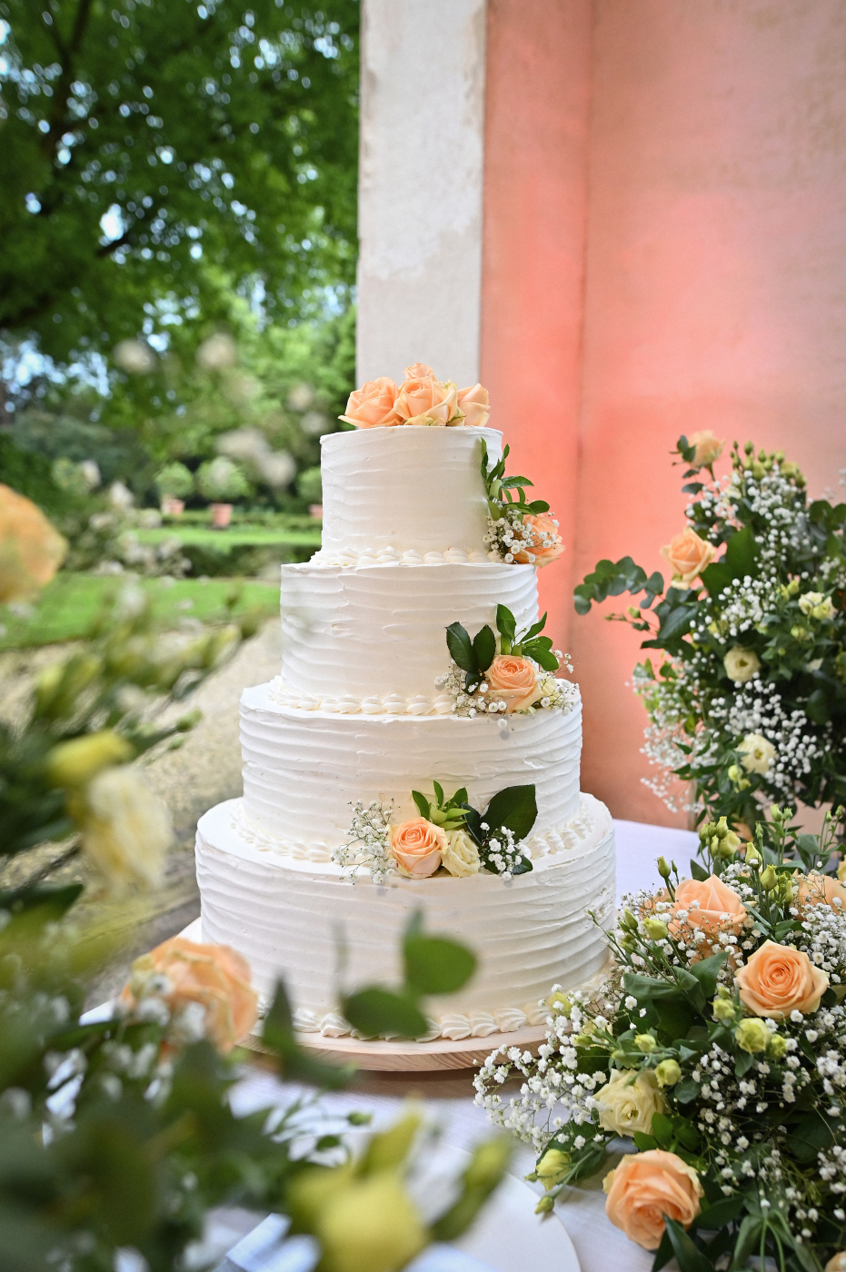 Celebrare le nozze a Villa Ca’ Marcello significa immergersi in un’atmosfera aristocratica. Sara e Gianluigi hanno scelto la maestosità del salone da ballo affrescato per il ricevimento, mentre il rinfresco si è svolto tra i sentieri del vasto parco storico, tra fontane e statue classiche.