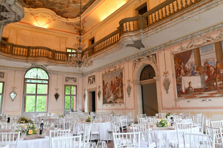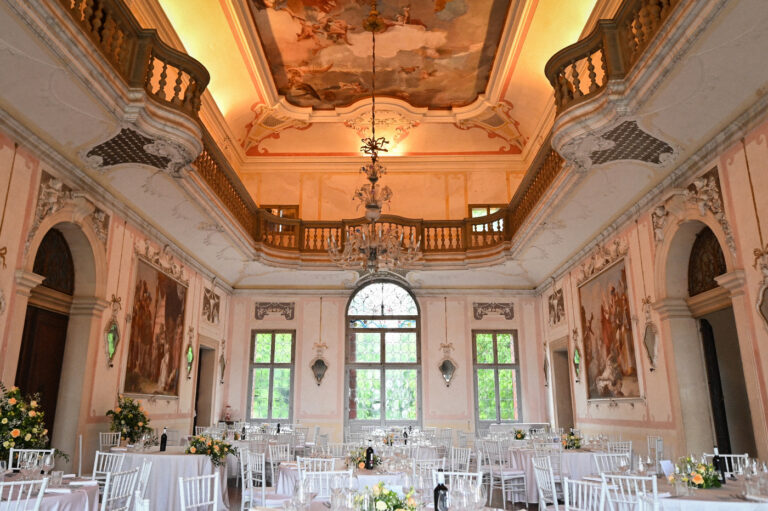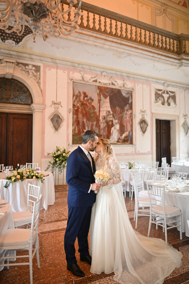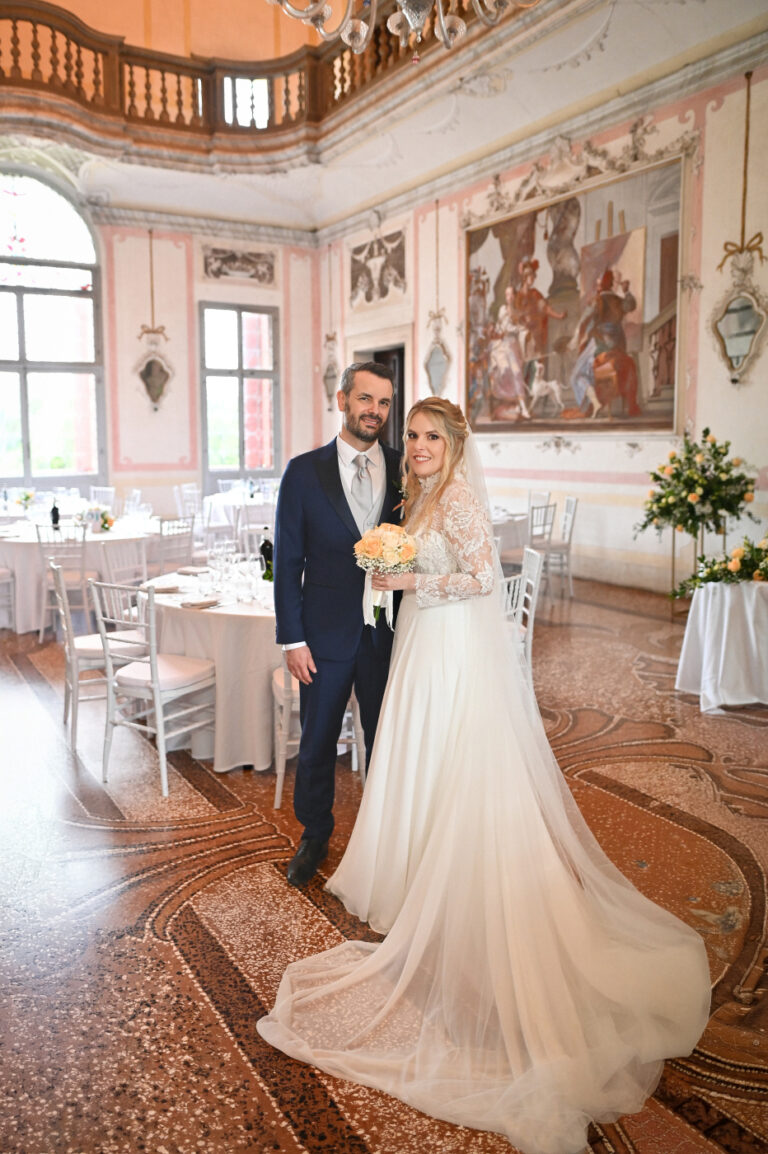Matrimonio di Sara e Gianluigi nella prestigiosa cornice di Villa Ca’ Marcello a Piombino Dese. Una celebrazione raffinata in una delle più belle ville venete, tra saloni affrescati e un parco storico secolare.